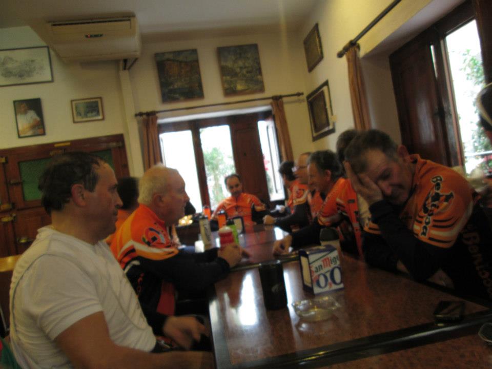 La ruta consistía en ir hasta Oliva por la carretera general, para desviarnos a Pego y almorzar en el Bar Rafel. A mitad del almuerzo, Pepelu, el más veterano de todos los presentes hizo un brindis de navidad. Posteriormente retomamos la ruta y volvimos por el interior hasta Orba, Parcent, Xaló y Benissa.